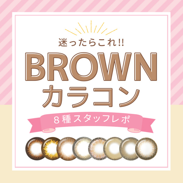 迷ったらこれ!!BROWNカラコン8種スタッフレポ 本日は、ベルアで人気のブラウンカラコン8種類をピックアップしてレポします♪ ブラウンカラコンの購入で迷ったときは、是非参考にしてください! 着用スタッフDATA ● 瞳の色:ダークブラウン ● パーソナルカラー:ブルベ夏 ● 撮影場所:明るめの室内 ● カメラ:iPhone11外カメラ 黒目の幅:12mm 白目の幅:30mm I Rabbit アイラビット 人気No.1理想の ドーリーFACE アイラビット着用画像 当店人気No.1の着色直径16.0mmカラコン! サイズが大きくてもハデになりすぎないので、ナチュラルさとデカ目、どちらも叶えられます♪ アイラビットをチェック Maylia メイリア 可愛さ満点!国内最大級の デカ目!! メイリア着用画像 着色直径16.0mmは、国内最大級の大きさ!!! しっかり盛れるお人形さんのようなデカ目を 目指すならコレ!写真も盛れると大好評です♪ メイリアをチェック FARIBファリブ 人気急上昇!ナチュラルで まんまるな瞳に ファリブ着用画像 発売後すぐにトップ10入りの実力派カラコン! 瞳にキレイになじんで、大きいのにナチュラル! 盛りたいけど派手なのは嫌!という方も安心♪ ファリブをチェック"" Macherieマシェリ 大注目!! リニューアルから 人気拡大中 マシェリ着用画像 控えめ発色の上品きれいめデザインが人気! シンプルなデザインで、使うシーンを選ばなそう!大きめでも、バレにくいのがいい!という方に♪ マシェリをチェック Juno ジュノ 早くも人気 オレンジ系のブラウンが大好評像 ジュノ着用画像 おしゃれさん必見!ヌケ感のある瞳。ハデかな?と思いましたが、透け感がきれい! 瞳を明るく見せてくれてお気に入りです♪ ジュノをチェック CAN_NAtulle キャンナチュール 色素薄い系 不動の人気No.1! キャンナチュールアイドルベージュ着用画像 ずーっと人気!SNSで話題の色素薄い系! ちゅるん感がかわいい、柔らかい目元♪ 発色明るめで、瞳が黒い人にもおすすめ! キャンナチュール アイドルベージュをチェック CAN_NAtulleキャンナチュール まるで裸眼大人可愛い チョコカラー キャンナチュールコアブラウン着用画像 ふんわり、さりげなく盛るならコレ!裸眼のような色味と、大きすぎないサイズ感が◎かなり馴染むので、間近で見てもバレにくそう!! キャンナチュール ココアブラウンをチェック Honey Lip ハニーリップ 自然な大きさ ナチュラル派さん必見です! ハニーリップ着用画像 ナチュラル派に大人気!リピーター続出!!元々、黒目が大きいのかな?と思えるほど自然!学校やお仕事にもオススメです◎ ハニーリップをチェック
